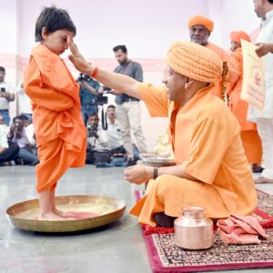 He worshipped the consecrated idols and performed aarti. Here, the Ramlalla had been placed in a flower-decorated cradle. As the clock struck twelve noon, he performed worship rituals of Ramlalla seated in the cradle amid Vedic chanting. After applying tilak to the deity and offering garlands, he performed aarti. Upon completion of the rituals, CM Yogi reverently cradled the Ram Lalla.