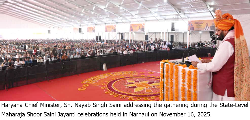 The Chief Minister was addressing the state-level Maharaja Shoor Saini Jayanti ceremony in Narnaul as the Chief Guest. Prior to this, he inaugurated and laid the foundation stones of 19 development projects worth Rs 84 crore.