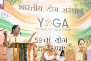 She was speaking at the 59th Foundation Day and Yoga Day celebrations of the Indian Yoga Institute, organised at Chhatrasal Stadium. The Chief Minister highlighted that over the last 11 years, under the leadership of Prime Minister Narendra Modi, yoga has gained worldwide recognition and respect.