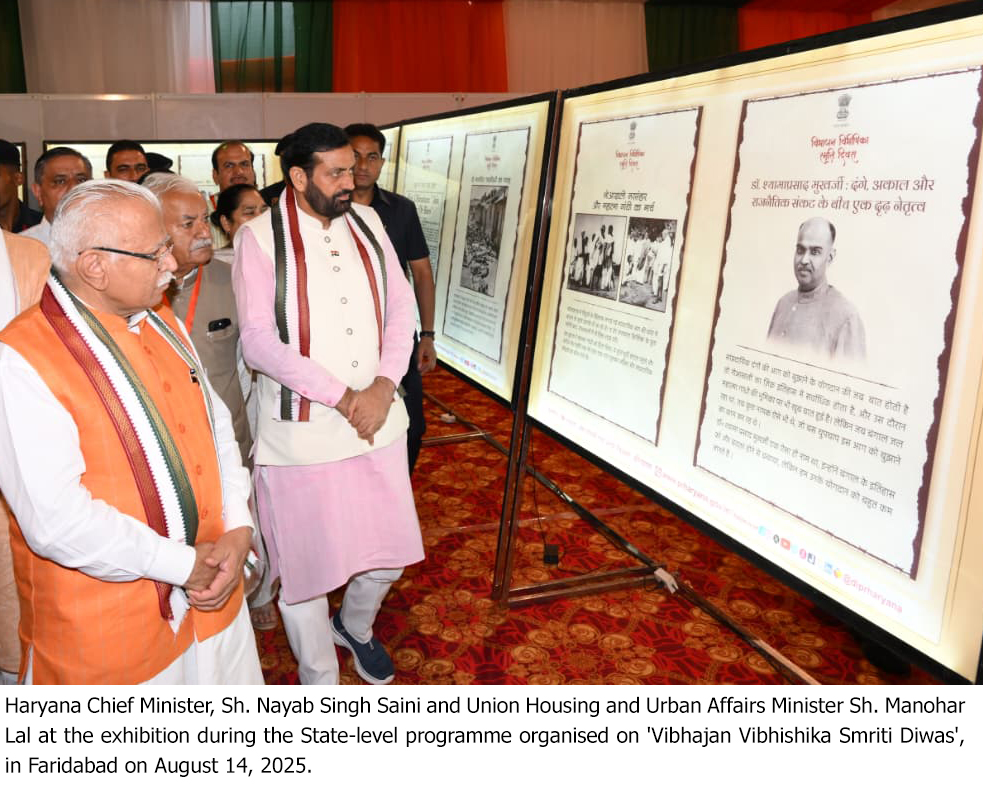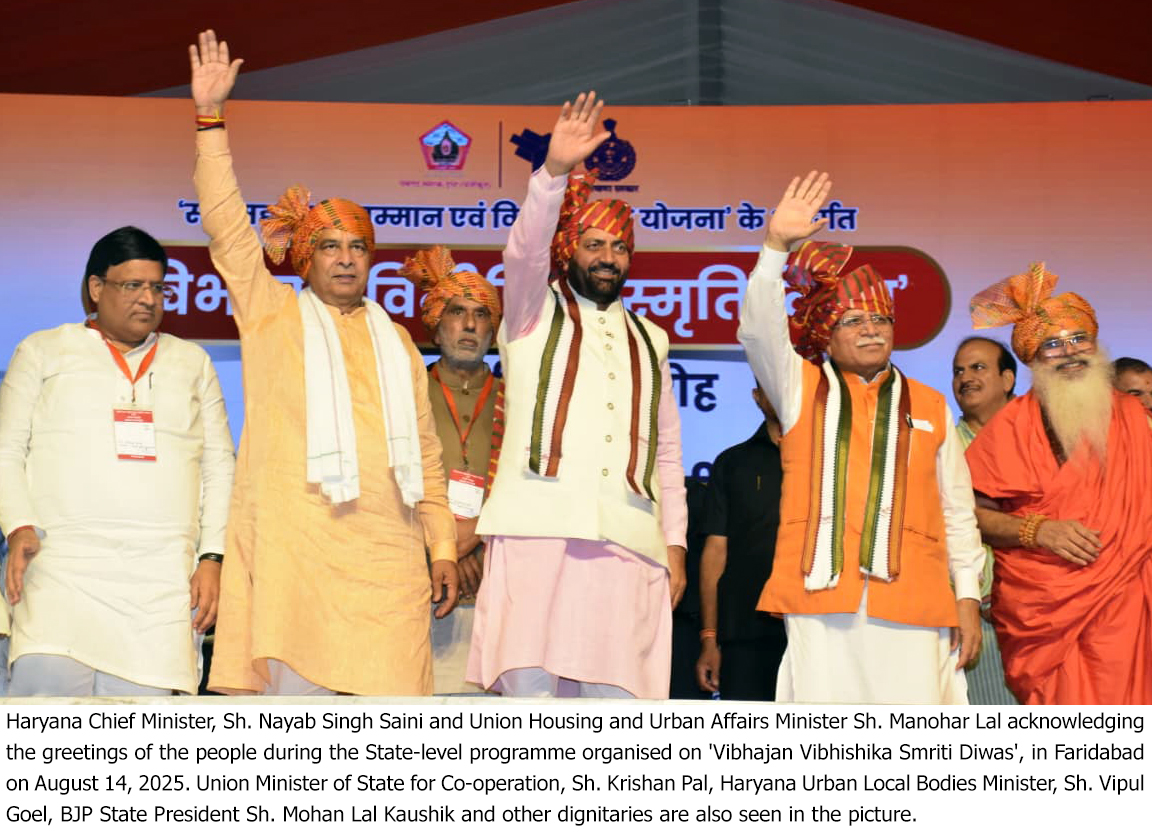 New Delhi, August 14 – On the occasion of Vibhajan Vibhishika Smriti Diwas (Partition Horrors Remembrance Day), Chief Minister Nayab Singh Saini today inaugurated and laid the foundation stones for 29 development projects in Faridabad district, with a total cost of ₹564.27 crore. These include the inauguration of 7 projects worth ₹61.20 crore and the foundation laying for 22 projects worth ₹433.15 crore.