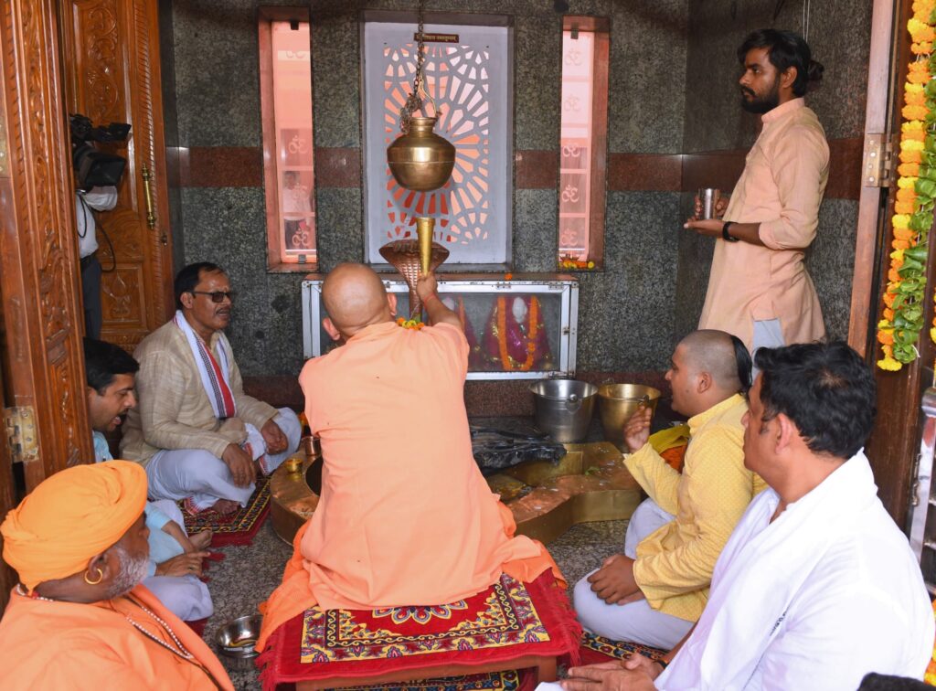 Gorakhpur – On the pious occasion of Sawan Shivratri, Uttar Pradesh Chief Minister and Goraksha Peethadhishwar Yogi Adityanath performed the sacred Rudrabhishek at the ancient Mansarovar Temple located in Andhiyari Bagh, Gorakhpur. The CM invoked the blessings of Lord Shiva (Mahadev) for the welfare, prosperity, and peaceful life of the citizens of Uttar Pradesh.