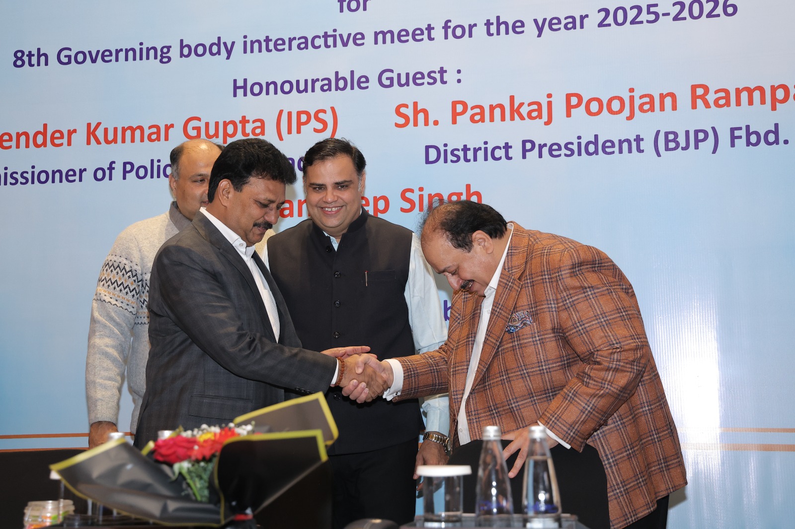 Faridabad: The 8th Governing Body Interactive Meeting of the Faridabad Chamber of Commerce & Industry (FCCI) was held on Wednesday, December 17, 2025, bringing together industry leaders and senior officials to deliberate on key civic and industrial issues. Faridabad Joint Commissioner of Police Rajesh Duggal, IPS, attended the meeting as the Chief Guest, along with Haryana State Pollution Control Board (HSPCB) Regional Officer Sandeep Singh and BJP District President Pankaj Poojan Rampal.