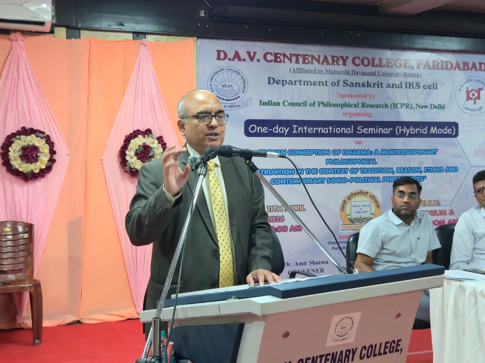 Faridabad : D.A.V. Centenary College, Faridabad, successfully organized a one-day International Seminar in hybrid mode (both offline and online) under the aegis of its Department of Sanskrit and Indian Knowledge System (IKS) Cell, in collaboration with the Indian Council of Philosophical Research (ICPR), New Delhi. The seminar was themed “Multidisciplinary Philosophical Reconstruction of Indian Dharmabodha: Tradition, Reason, Ethics, and Contemporary Socio-Political Perspectives.”
