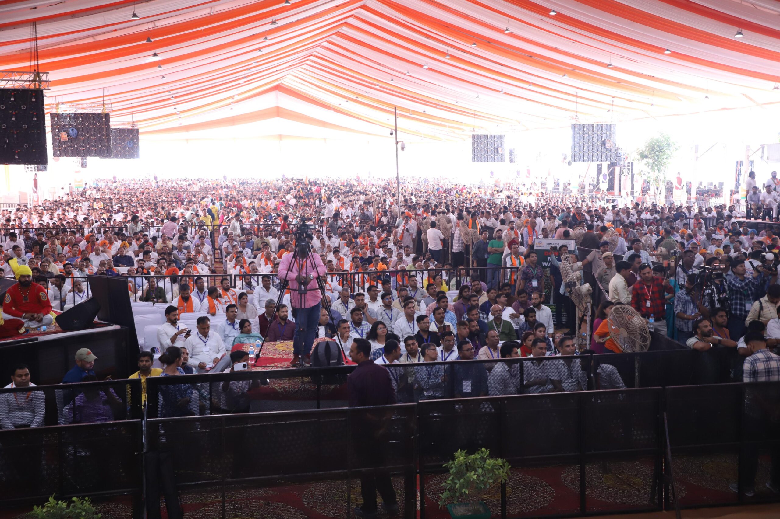 During this event, the occasion was graced by the dignified presence of numerous distinguished guests, including BJP State President Mohan Lal Badoli, Union Minister of State Krishan Pal Gurjar, Haryana Ministers Rajesh Nagar and Gaurav Gautam, MLA Moolchand Sharma, MLA Satish Fagna, MLA Dhanesh Adlakha, MLA Harinder Ramratan, Faridabad Mayor Praveen Batra Joshi, BJP District President for Faridabad Pankaj Poojan Rampal, Haryana BJP General Secretary Surender Punia, District President Sohan Pal Chokar, District President Vipin Bainsla, former Minister Seema Trikha, former MLA Narendra Gupta, former MLA Nayan Pal Rawat, Nikhil Nanda, Neera Tomar, Media Advisor to Haryana CM Rajeev Jaitly, and District In-charge Narendra Vats and many other dignitaries.