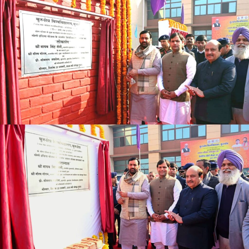 Kurukshetra, Jan 22, 2026 – In a major development for sports in Haryana, Chief Minister Nayab Singh Saini inaugurated a state-of-the-art synthetic hockey ground at the Kurukshetra University Sports Complex. The facility has been constructed under the Khelo India Scheme with an investment of approximately ₹5.50 crore, aimed at providing world-class infrastructure to nurture the state’s budding athletes.
