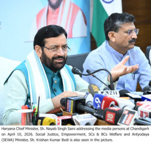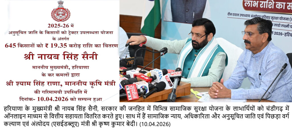 New Delhi, April 10- In a major step towards strengthening social welfare delivery and ensuring last-mile financial inclusion, the Chief Minister of Haryana on Friday disbursed a total amount of Rs. 1,665.25 crore directly into the bank accounts of beneficiaries under 18 different government schemes.