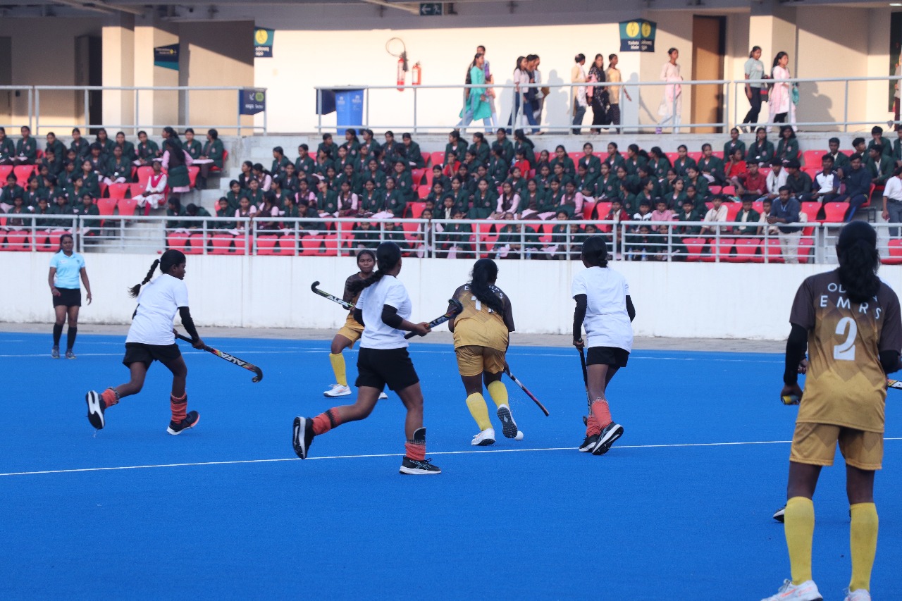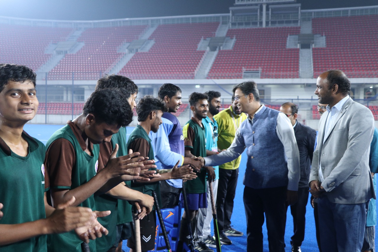 Ajeet Kumar Shrivastava, Commissioner, National Education Society for Tribal Students (NESTS), attended the Boys’ Hockey Final of the 4th National EMRS Sports Meet 2025 at the International Birsa Munda Hockey Stadium, Rourkela. Shri Vipin Kumar, Joint Commissioner, and Ms. Rashmi Chaudhary, Assistant Commissioner, NESTS, were also present during the final match.