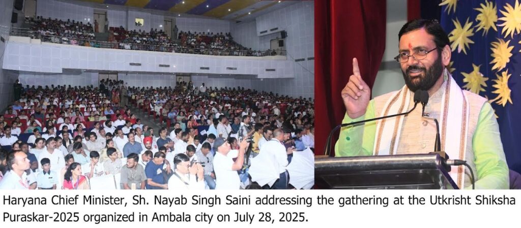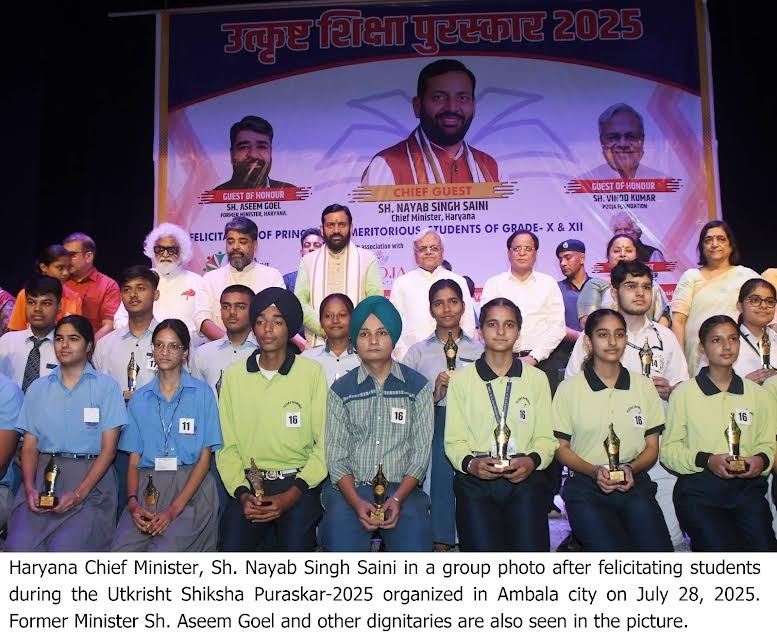 The Chief Minister was speaking at the Utkrist Shiksha Puraskar 2025 programme organized by Pooja Foundation in Ambala on Monday. During the programme, he honoured students who had achieved remarkable results in Class 10 and 12 examinations.