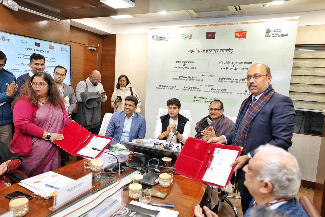 New Delhi : In a major step towards accelerating rural transformation and expanding financial, digital and logistics services for Self-Help Groups (SHGs) and rural households across the country, the Department of Posts (DoP) and the Ministry of Rural Development (MoRD) today signed a Memorandum of Understanding (MoU) to deepen collaboration in support of inclusive and sustainable rural development.