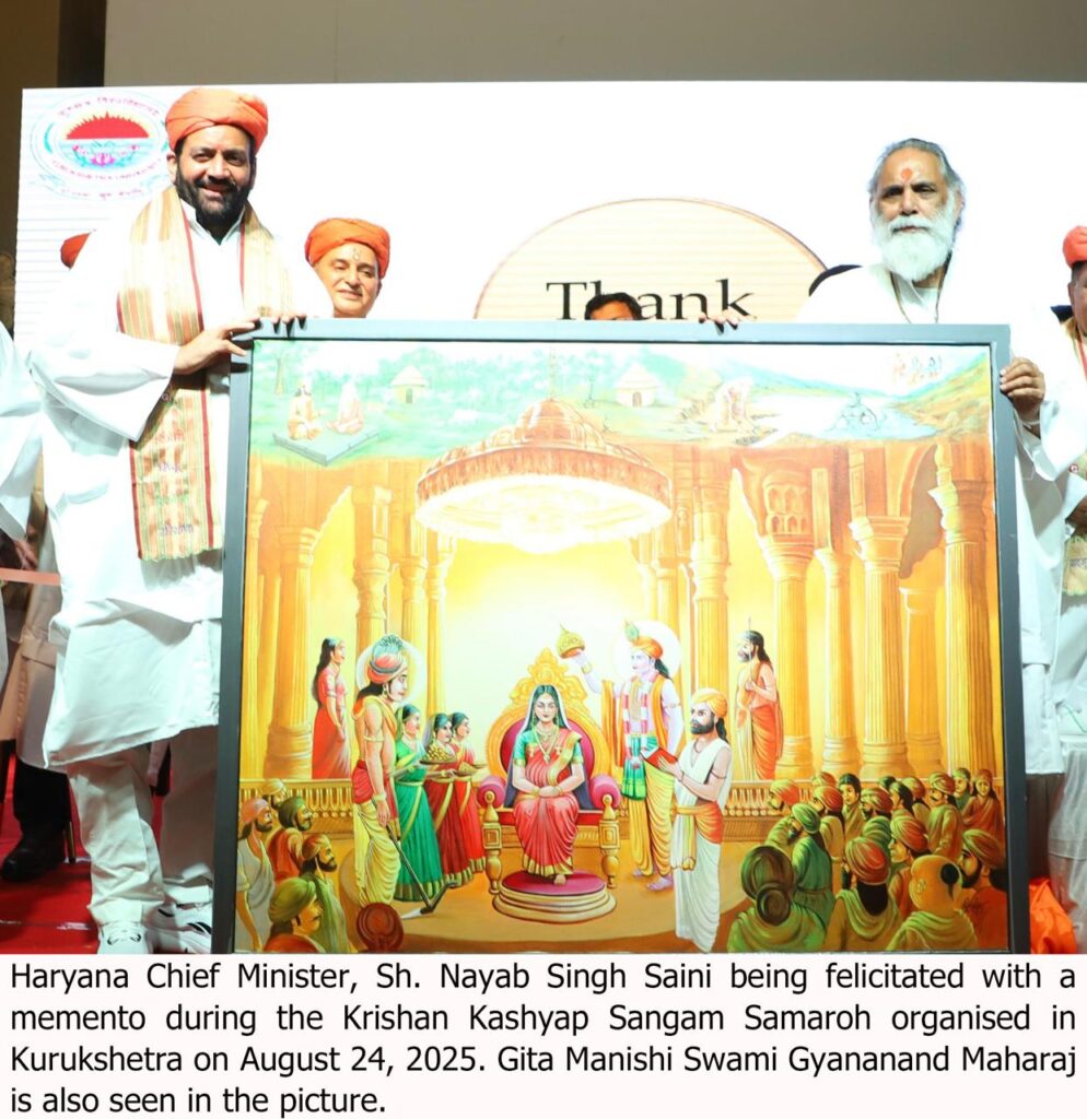 Gita Manishi Swami Gyananand Ji Maharaj said that Kashmiris, by coming to Kurukshetra, have deepened their spiritual and cultural connection with it. Now, under the banner of Shri Krishan Kripa Seva Samiti, a large-scale Gita Mahotsav will be organized in Srinagar. The geographical and spiritual identity of Kashmir is great, he said, adding that efforts are being made to restore Kashmir’s spiritual identity. With courageous steps, the path for permanent peace in Kashmir has been paved.