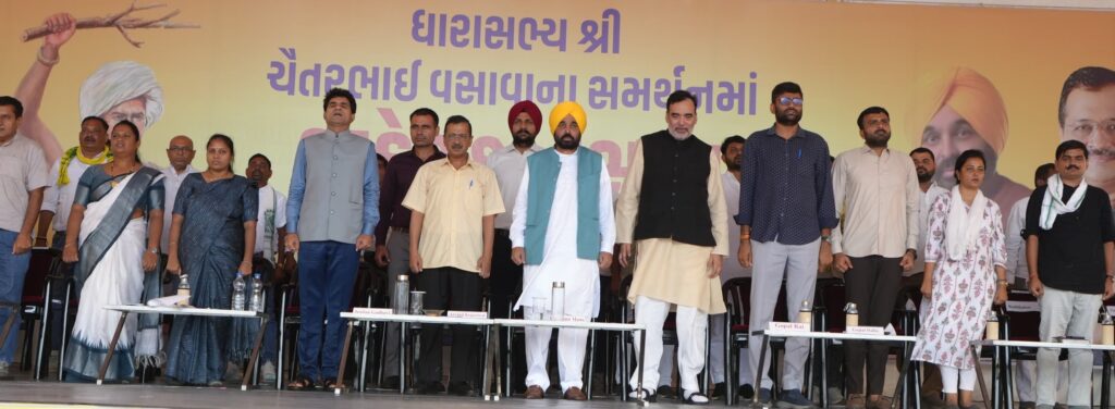 Calling for public awakening, he emphasised, “No one will come to save you. But when you rise, even God will stand with you. Aam Aadmi Party gives tickets to ordinary people. Chaitar Vasava is a common person, not a politician’s son. He has no uncle, father, or relative in politics. Neither do I. Nor does Isudan Gadhvi, nor does Bhagwant Mann. We are all ordinary people.”