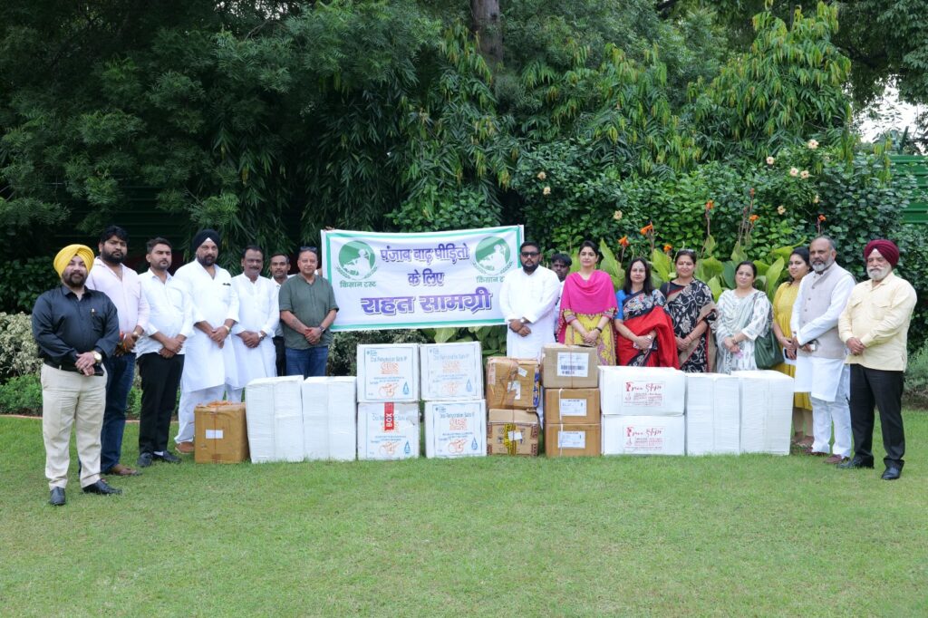 New Delhi: Relief material for Punjab flood victims was dispatched from New Delhi by Kisan Trust, with Trustee Charu Chaudhary flagging off the consignment. As part of this major humanitarian initiative, one truck carrying essential supplies and medicines was sent, receiving strong support from the Meerut RLD team and senior leaders.