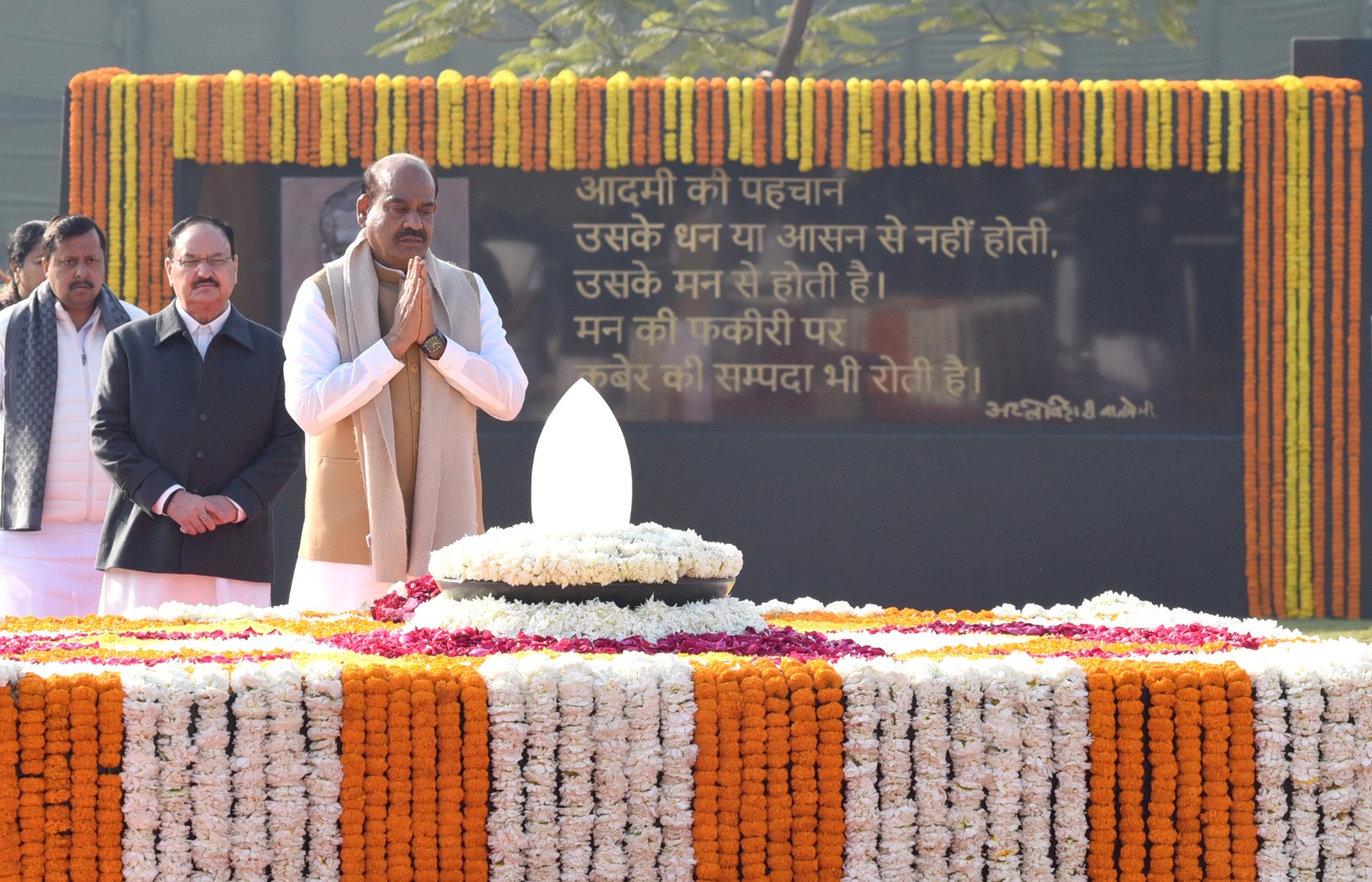 Earlier in the day, Lok Sabha Speaker paid floral tributes to former Prime Minister Bharat Ratna Shri Atal Bihari Vajpayee at Sadaiv Atal on the occasion of his birth anniversary.
