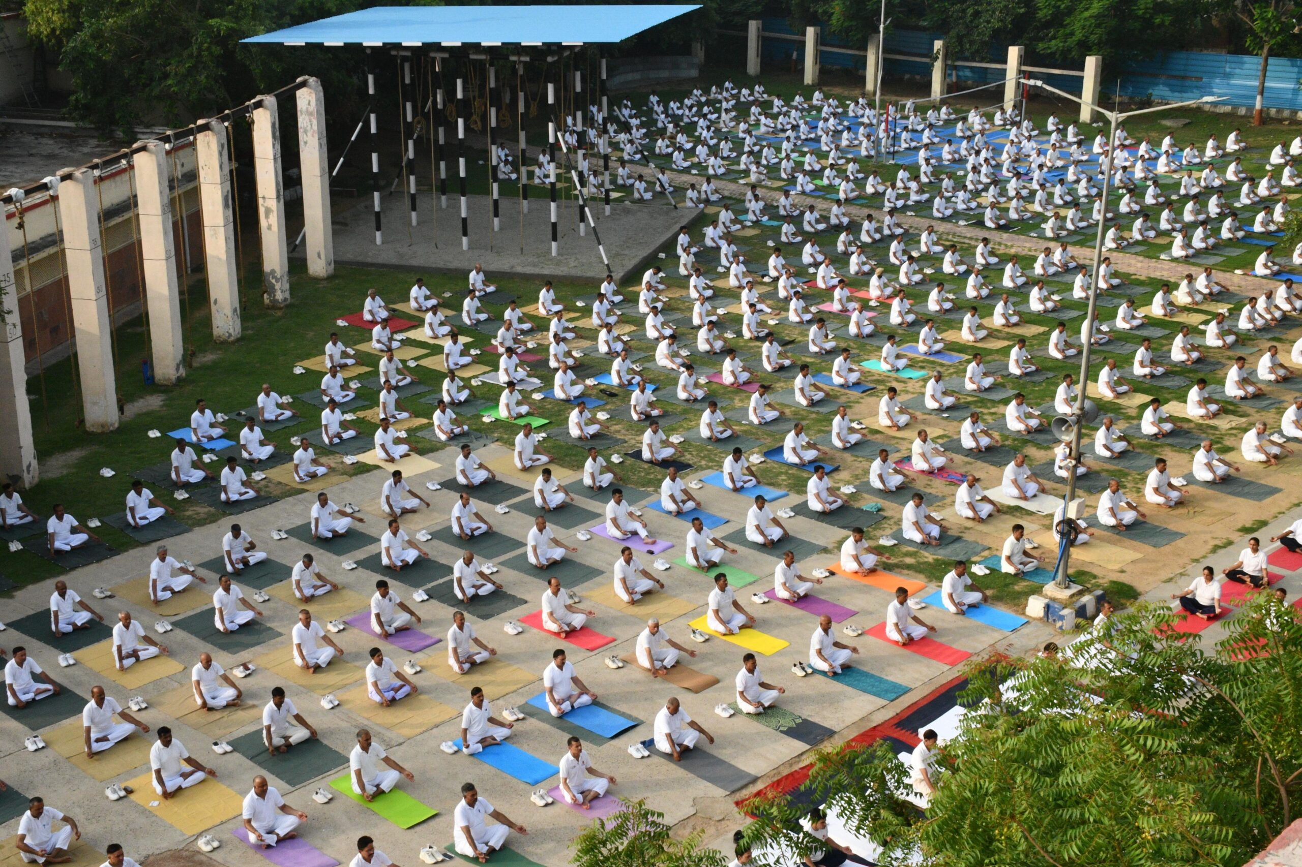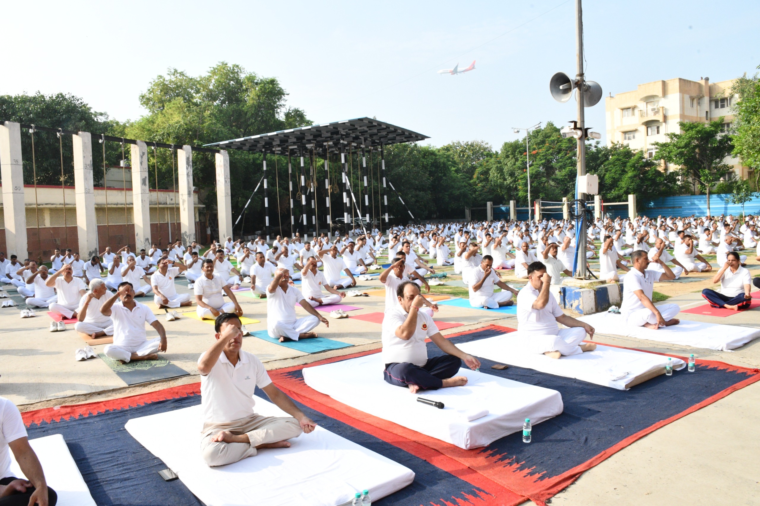 At the Dwarka campus, Asif Mohammad Ali, IPS, Joint Director, led by example, participating in a yoga session with 600 trainees and trainers.