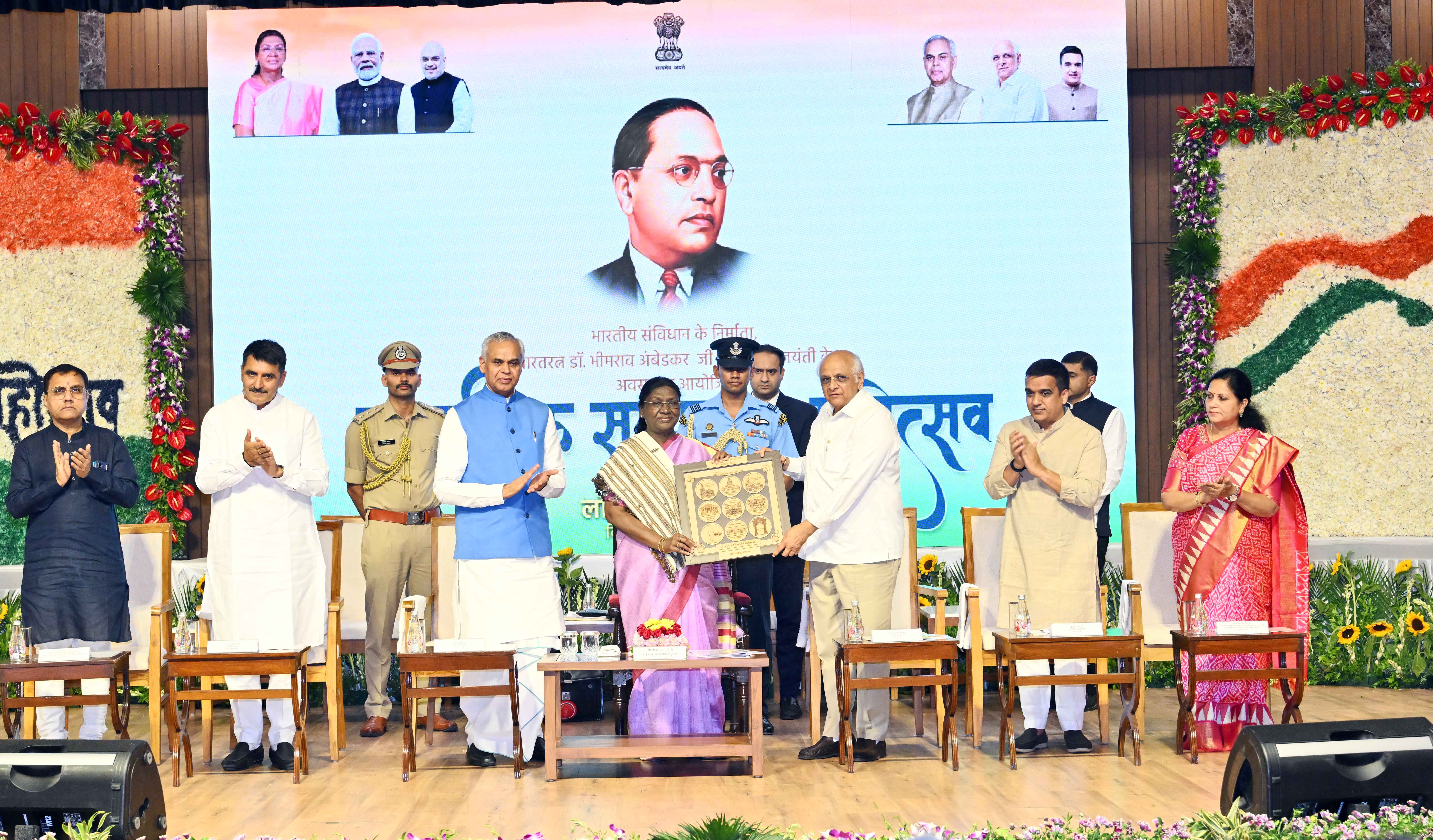 Gandhinagar, April 14, 2026: President Droupadi Murmu attended the Samajik Samrasta Mahotsava at Lok Bhavan in Gandhinagar on Tuesday, marking the birth anniversary of B. R. Ambedkar and emphasizing the importance of social harmony for the country’s progress.