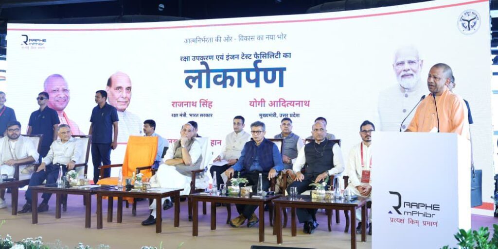 Gautam Buddha Nagar– Taking a significant leap towards realizing the vision of Atmanirbhar Bharat in the defence sector, Defence Minister Rajnath Singh on Saturday inaugurated the defence equipment and drone manufacturing unit, aircraft engine, and defence aerospace test facility in Gautam Buddha Nagar. Chief Minister Yogi Adityanath was present at the event.