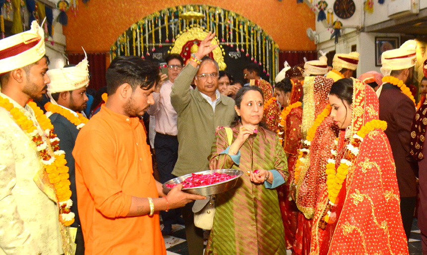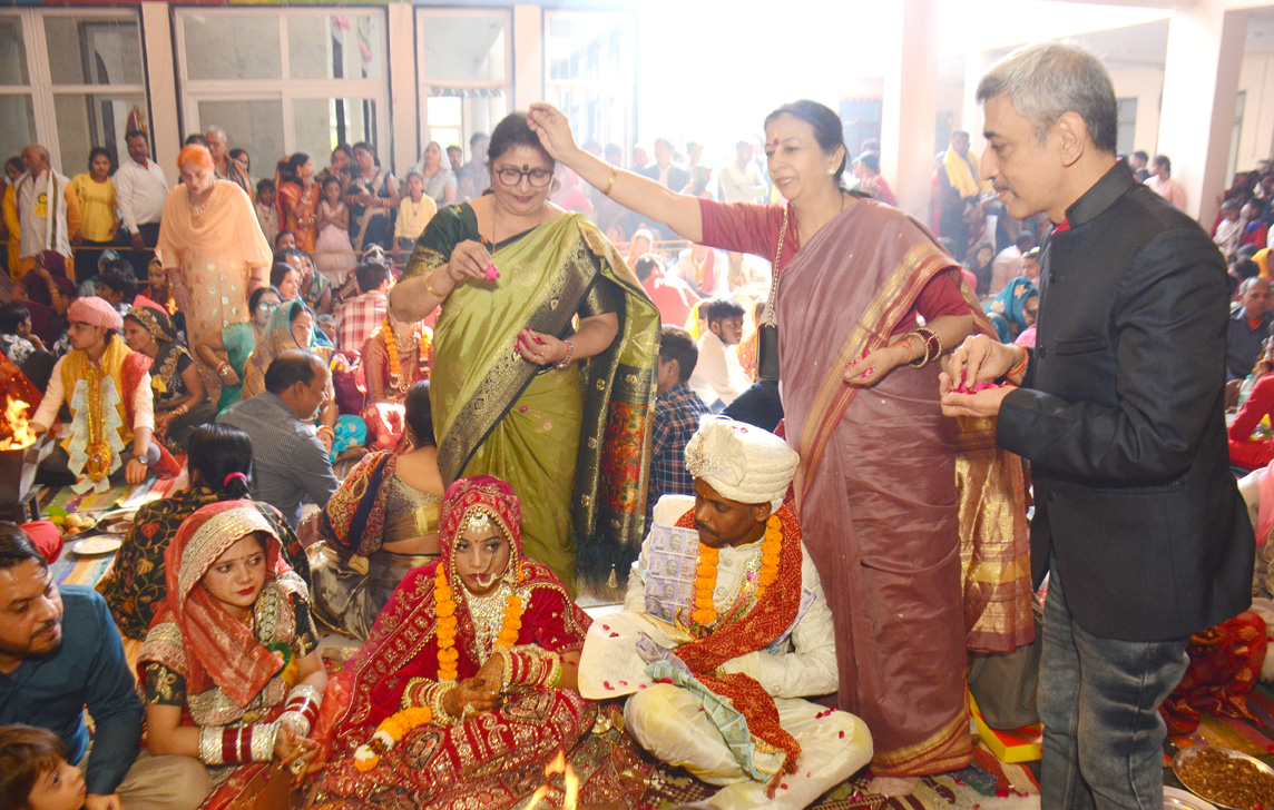 Faridabad: Sai Dham witnessed a joyful and emotional atmosphere on Sunday as 25 couples were united in marriage during a grand mass wedding ceremony organised by the institution. The event began with the ceremonial lighting of the lamp by chief guests Tanuj Ahuja and Ishita Patil, along with their families.