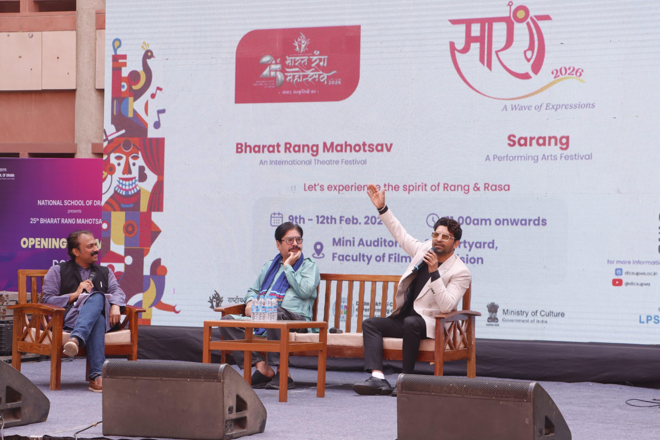 Actor Jatin Sarna said that this is a very lovely phase, where there are immense opportunities to do good work and learn. For any actor to perform well, it is very important to read, observe, and understand. It is not that you can become ready by doing just one or two plays or acting in a few places; becoming a good actor requires investing time. Therefore, regular practice is also necessary. He said that SUPVA is a wonderful institution where students get all facilities under one roof. One should make the most of these facilities and move forward. He congratulated the university management for grand events like ‘Bharangam’ and ‘Sarang’.