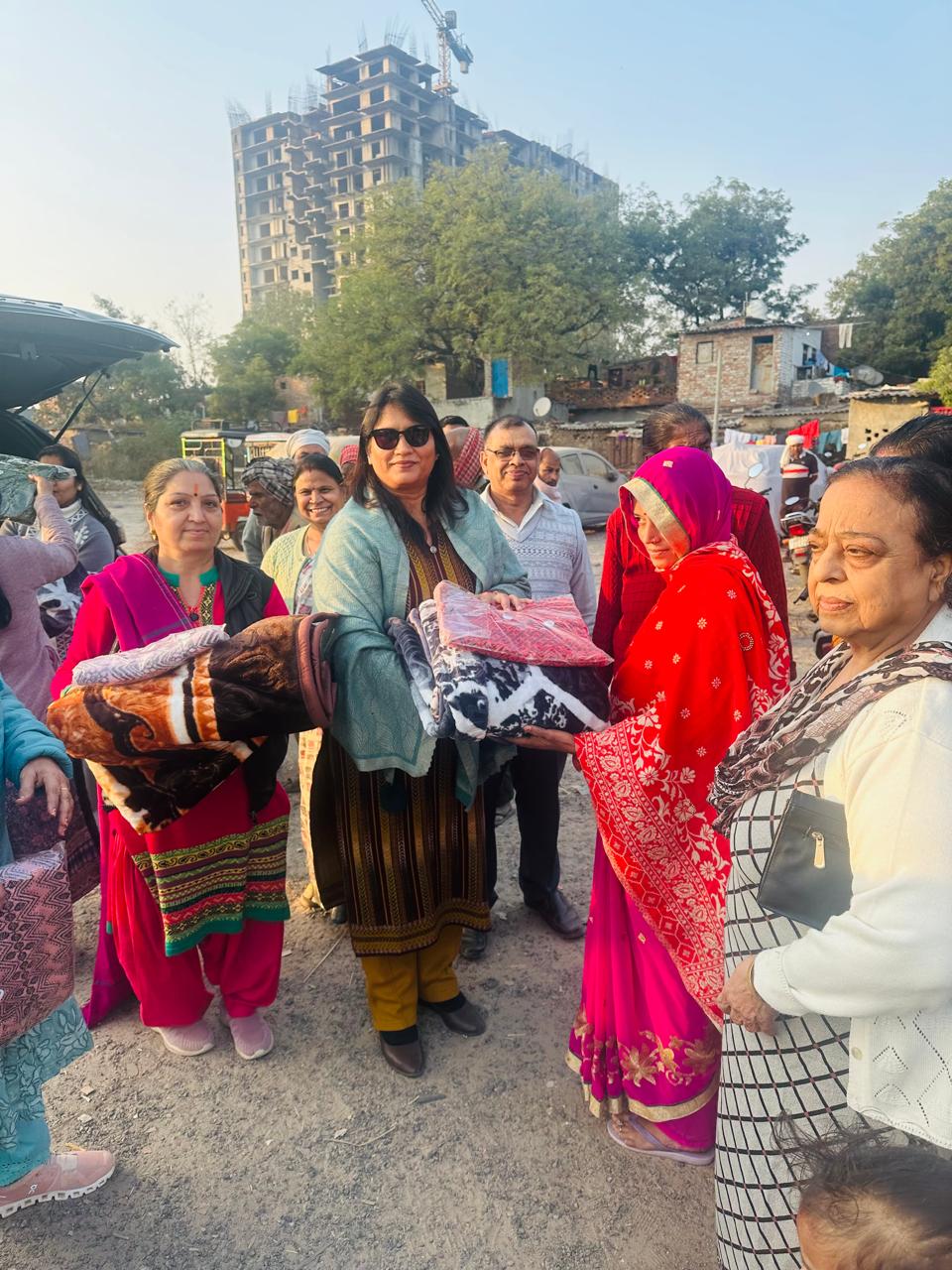 The relief drive commenced yesterday with the distribution of blankets, ladies’ sweaters, biscuits, and children’s socks. Dr. Vijay Luxmi, the Founder and Director, personally led the initiative along with the foundation’s dedicated team, ensuring that each item reached those most in need with care and dignity.