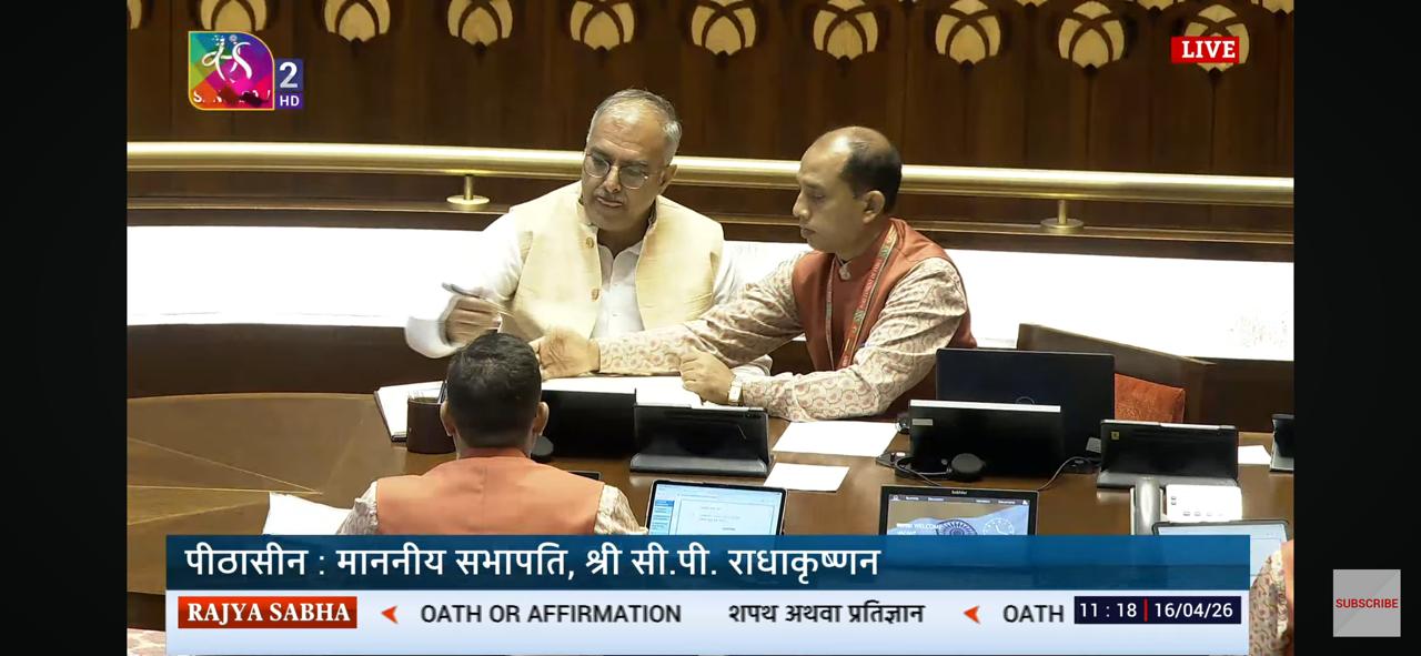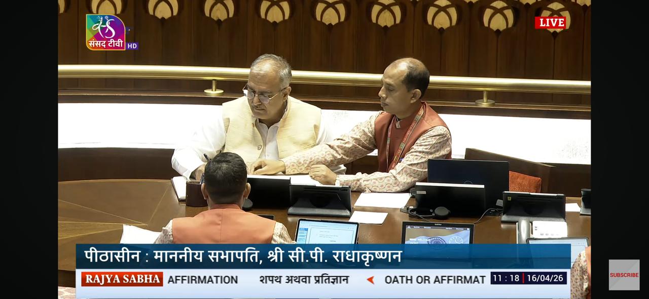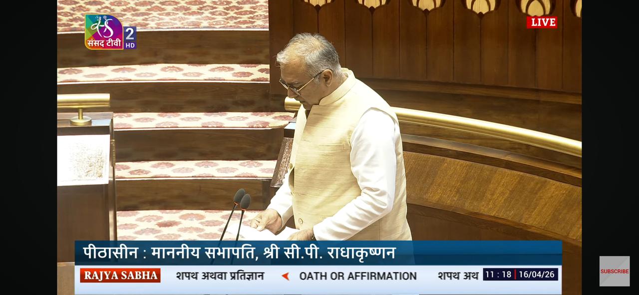 New Delhi, April 16: Newly elected Member of Parliament from Haryana, Sanjay Bhatia, took oath as a Member of the Rajya Sabha on Thursday. The oath was administered by Vice President of India and Chairman of the Rajya Sabha, C.P. Radhakrishnan. Bhatia took the oath in Hindi.