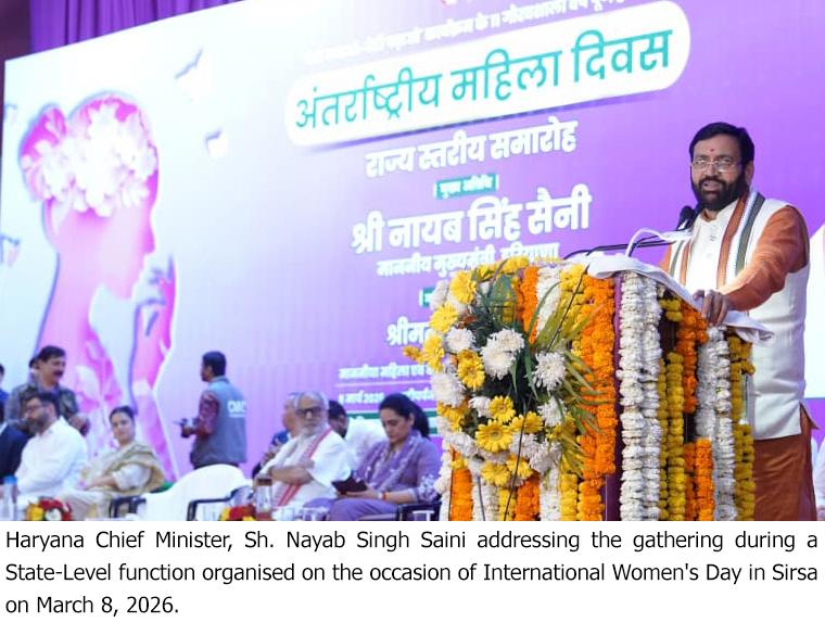 Extending greetings to women present at the ceremony,  Nayab Singh Saini said that while the world is celebrating International Women’s Day, Haryana is also marking 11 years of the ‘Beti Bachao, Beti Padhao’ campaign, which was launched from the historic land of Panipat.
