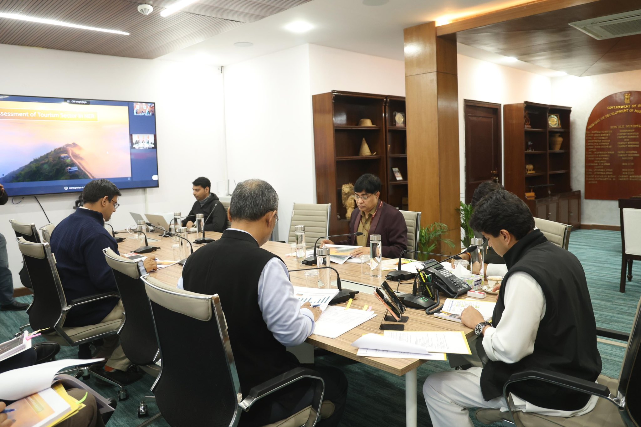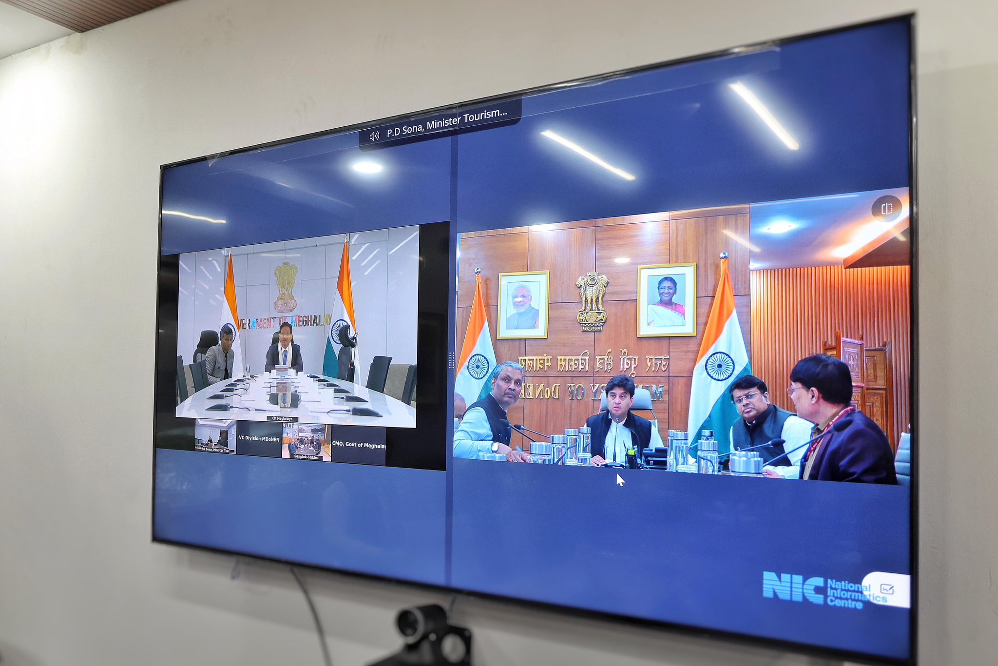 New Delhi  : Union Minister for Communications and Development of North Eastern Region, Jyotiraditya M. Scindia, today participated in the 4th meeting of the High-Level Task Force on Tourism held in New Delhi. The meeting, convened by Meghalaya Chief Minister Conrad K. Sangma, witnessed the participation of Tripura Chief Minister Manik Saha, Sikkim Tourism Minister Tshering T. Bhutia, Arunachal Pradesh Tourism Minister Pasang Dorjee Sona, and Joint Secretary, Ministry of Tourism, M.R. Synrem.