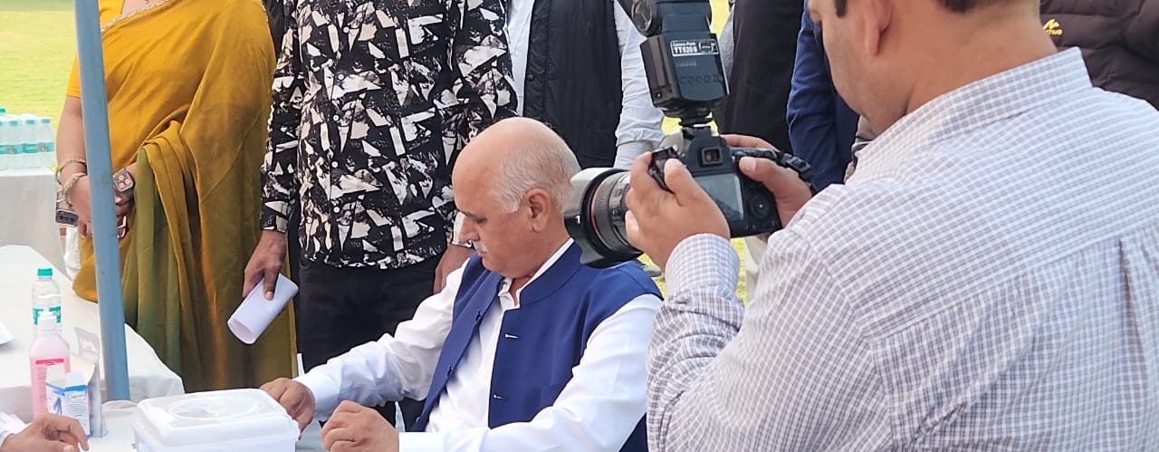 Faridabad: A mega free health check-up and blood donation camp was organised at Asha Jyoti Vidyapeeth, Sector 65 Shahpura, on the 18th death anniversary of renowned educationist Ch. Tekram Dagar. Hundreds of people underwent medical examinations, while around 209 individuals were identified as needing eye surgery.