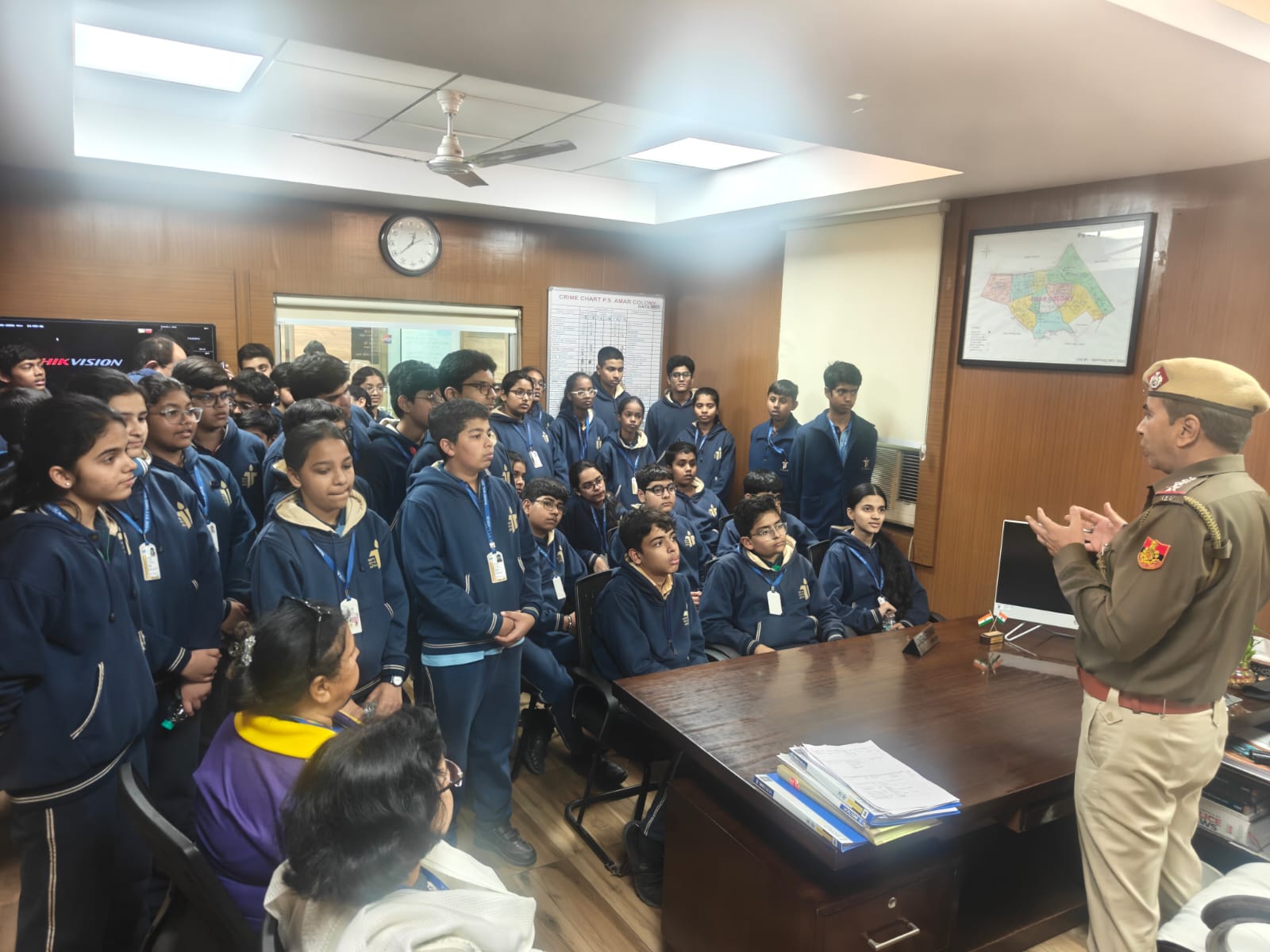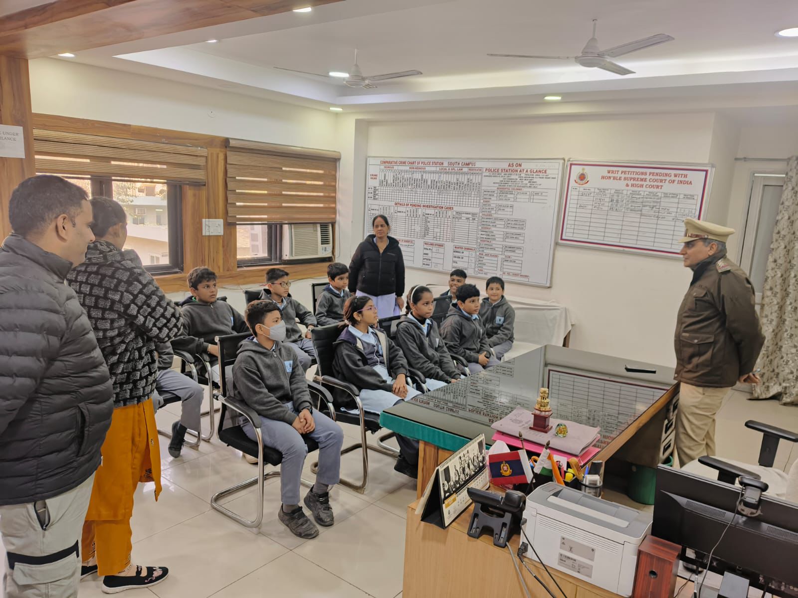 On this occasion, school students along with their teachers from various institutions across Delhi visited nearby police stations. The objective of these visits was to sensitise school students about the functioning of police stations, the duties and responsibilities of police personnel, complaint procedures, and important emergency helpline numbers. The visits were designed to build confidence and strengthen the bond between the police and young members of the community. At certain locations, self-defence training programmes were also organized for students.