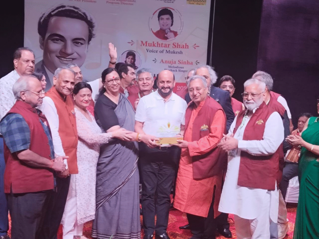 The evening opened with a documentary on Mukesh’s life and music journey, followed by a Saraswati Vandana and lamp lighting. Program director and noted poet Dinesh Raghuvanshi shared interesting anecdotes about Mukesh’s songs, keeping the audience engaged throughout. Before the concert, FLCC Treasurer Vasu Mitra Satyarthi welcomed Mukhtar Shah and media representatives in an interactive session. Shah discussed his career and praised FLCC’s initiative for organizing his first concert in Faridabad. Anuja Sinha remarked that today’s film songs lack melody and rhythm, which is why they fail to stay in people’s hearts.