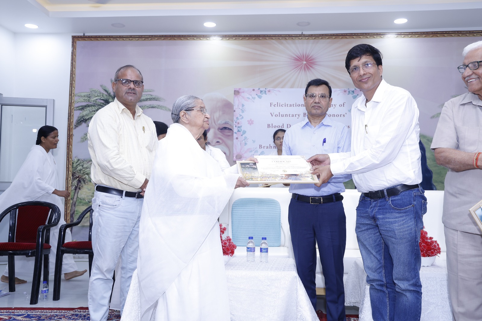 Faridabad: A felicitation ceremony for blood donors was organised at Brahma Kumaris NIT Service Centre, where more than 100 donors were honoured for their selfless contribution. Additional Deputy Commissioner (ADC) Satbir Maan attended the event as the chief guest and lauded the donors, stating that “blood donation is a supreme gift, as it saves lives in times of crisis and brings heartfelt blessings to the donor.” Service Centre in-charge, Brahma Kumari Usha Didi, emphasised that along with donating blood, one should also donate happiness, peace, love, and joy.