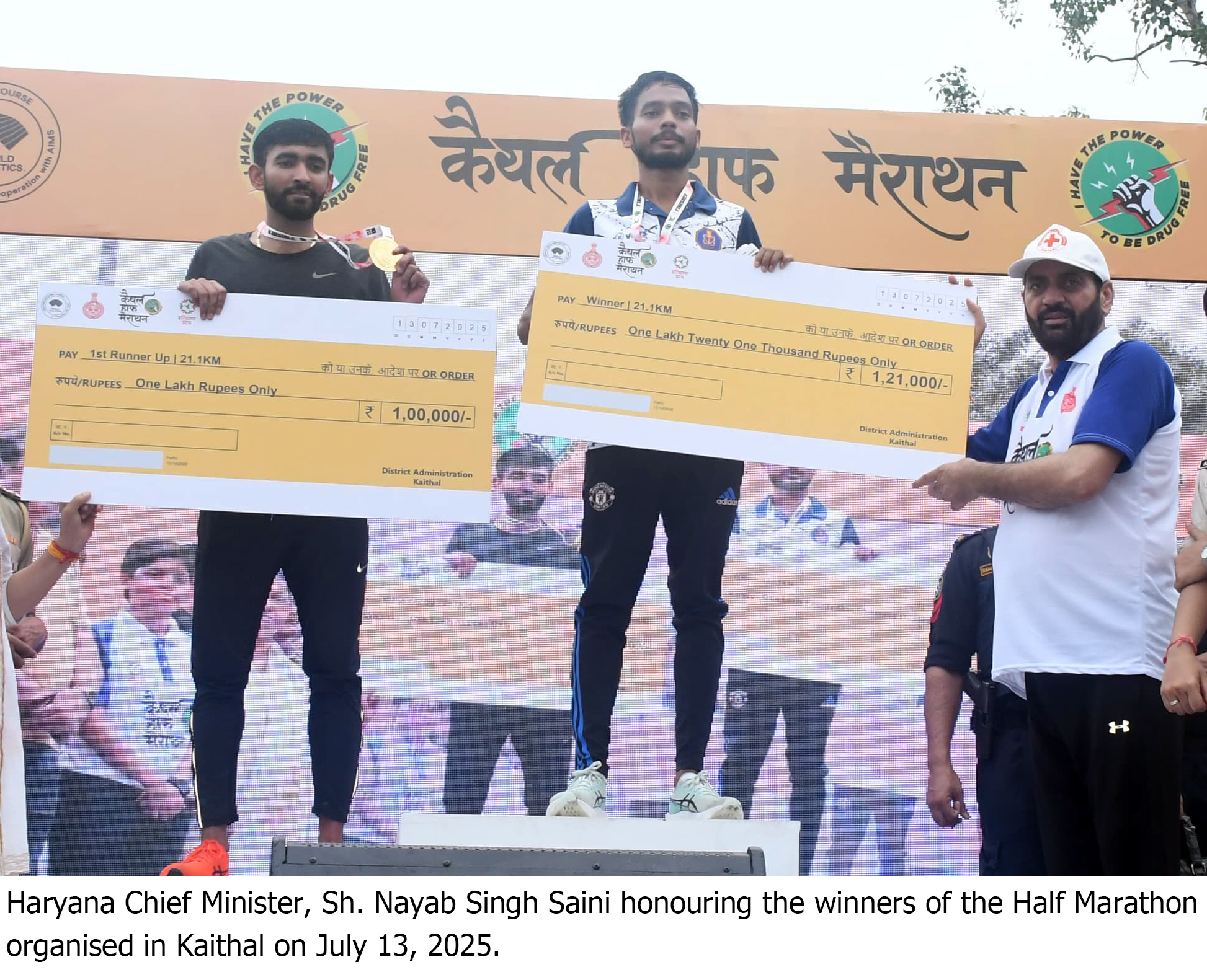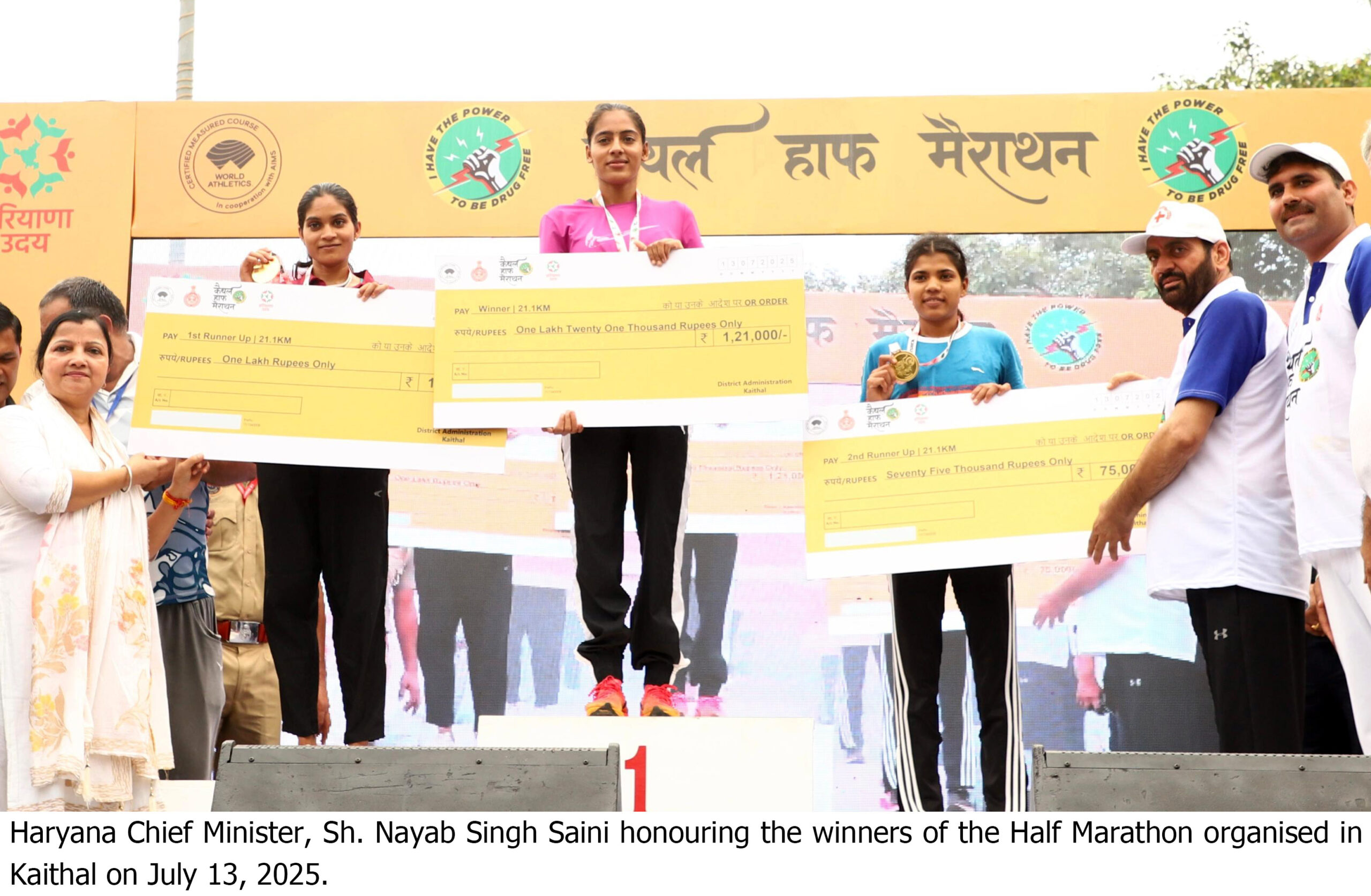 Nayab Singh Saini made these remarks while addressing thousands of participants before flagging off a half marathon on Ambala Road in Kaithal on Sunday morning. Paralympic medallist and half marathon brand ambassador Harvinder Singh, along with mountaineer Reena Bhatti, also took part in the event.