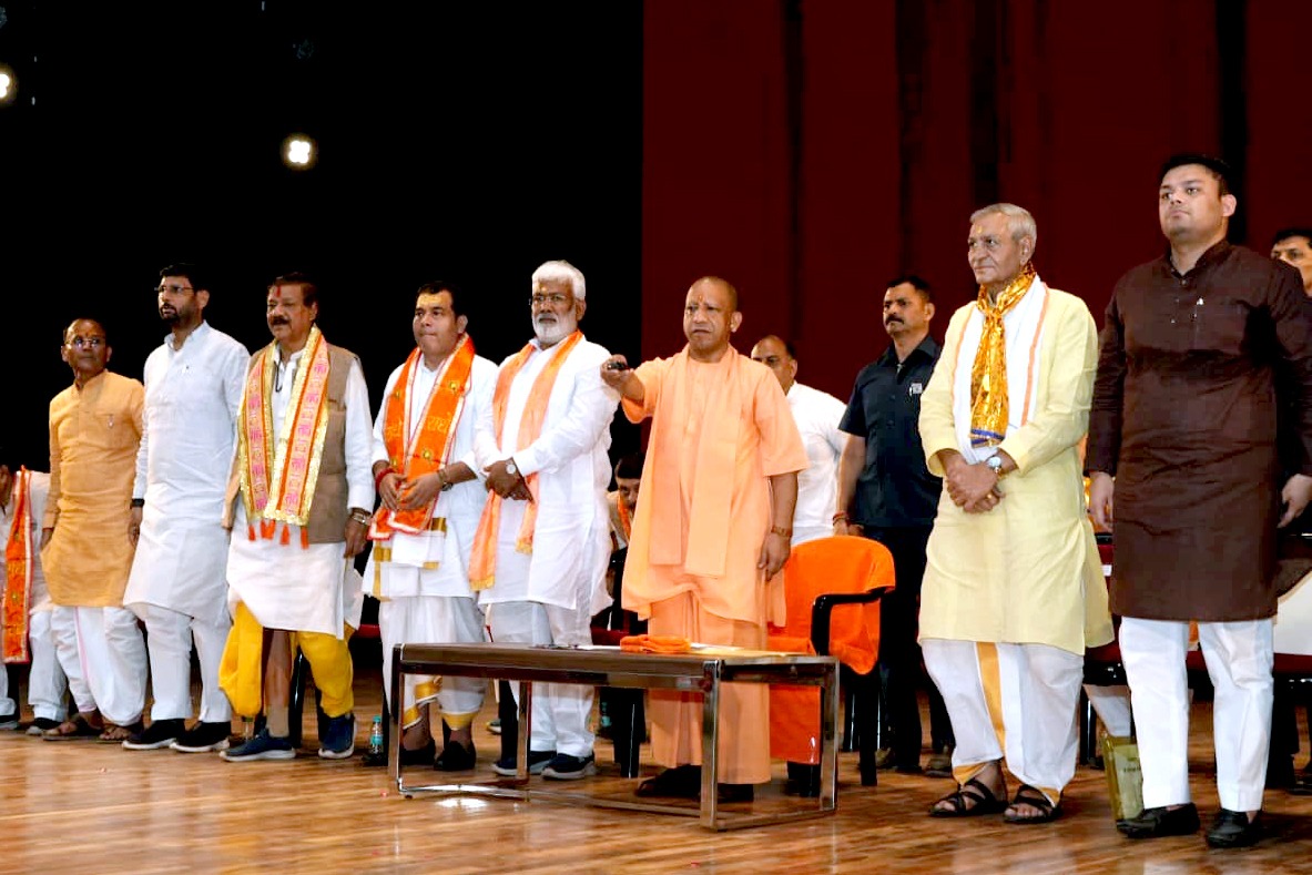 In his address, Chief Minister Yogi Adityanath stressed the importance of cow protection, describing ‘Gaumata’ as a symbol of Sanatan Dharma. He said his government is ensuring the care of destitute cattle and providing Rs 1,500 per month to farmers who rear cows, with over 1.6 million cows currently being protected. Urging people to guard against divisive tendencies of caste, region, or language, he called for honoring soldiers at the borders and fostering social unity. He added that as long as the flag of Sanatan Dharma guides the world, the values of universal brotherhood, peace, and harmony will endure.